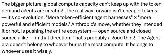 她认为,Anthropic此举并非单纯的商业防御,而是在全球算力供给无法追上Agent需求增速的背景下,整个生态系统走向成熟的一个必要节点。