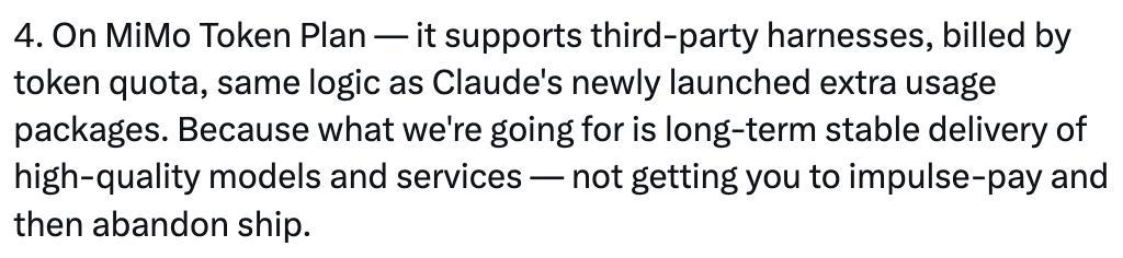 在解读Anthropic举措的同时,罗福莉也阐明了MiMo Token计划的设计逻辑。
