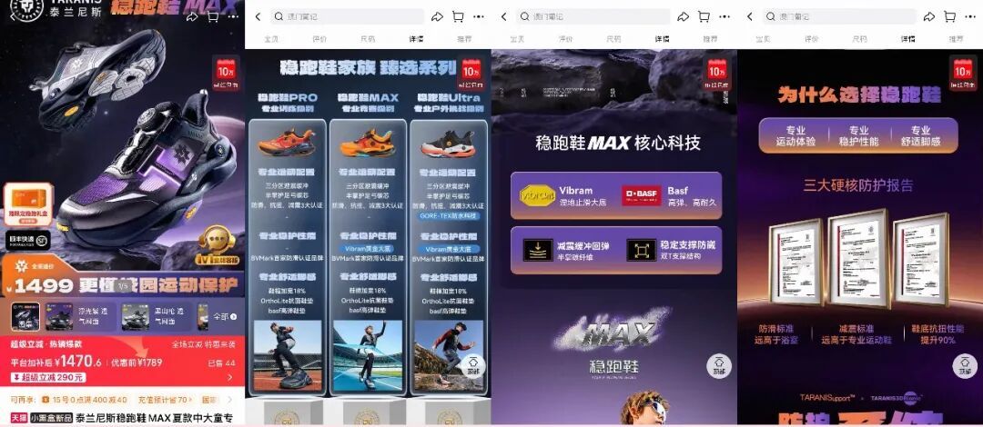 “碳板增强稳定性”“六分阶专业童鞋体系”等专业话术的叠加,使泰兰尼斯成功地将一个原本低焦虑、低决策的品类,改造成了一个需要“专业选择”的消费场景。