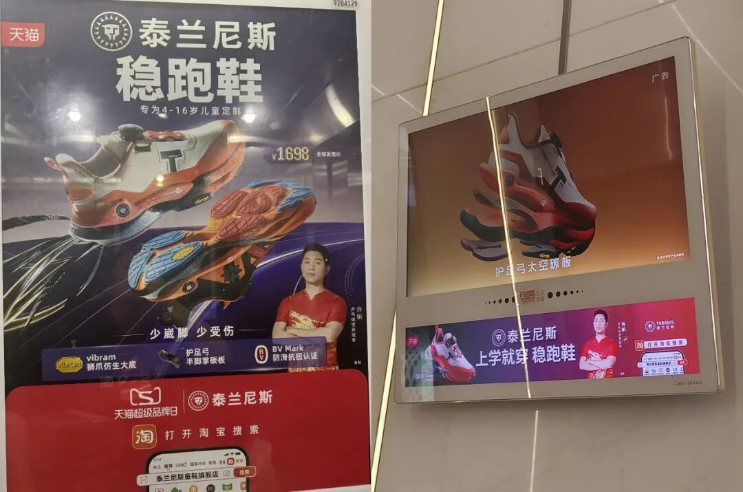 真正支撑这套体系运转的,是一套围绕“风险叙事”精心搭建的品牌话语体系,以及随处可见的大手笔广告投放。换言之,为孩子买入泰兰尼斯鞋子的家长,实质是在为无处不在的广告投放买单。